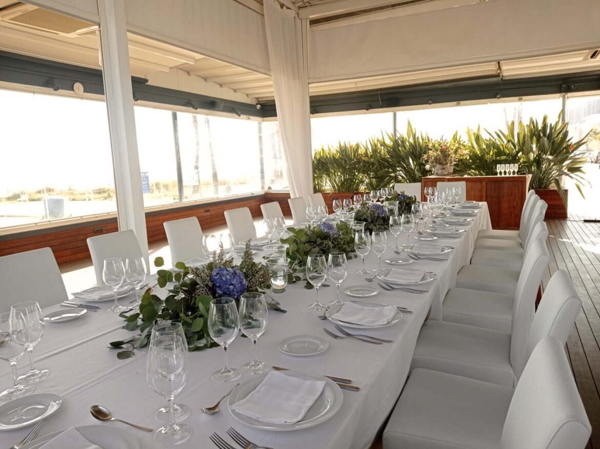 ¿Prefieres algo al aire libre? Nuestra terraza, con vistas al horizonte y capacidad para distintos formatos de montaje, es perfecta para cócteles al atardecer, brunchs relajados o celebraciones bajo las estrellas.